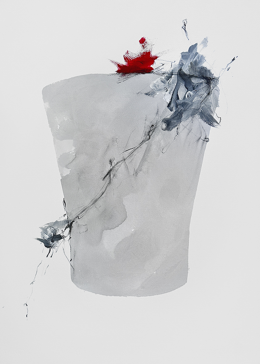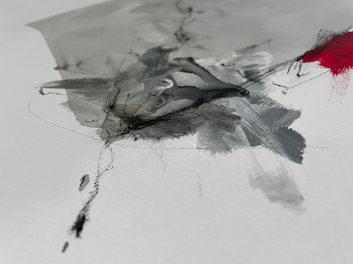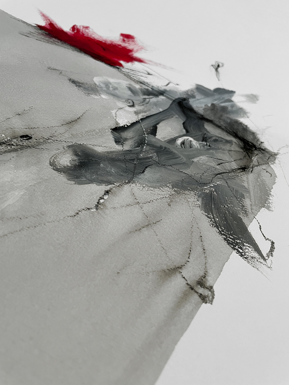 Untitled 2020, Acrylic, black clay and pencil on paper, 50x70 cm