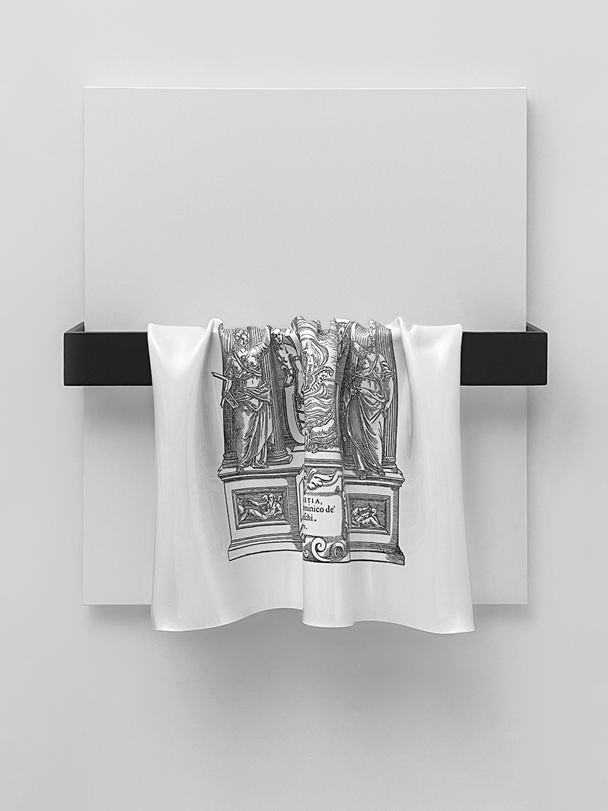 Termoformatura in polistirene, inchiostro, legno, smalto, tela, cm 60x70x23